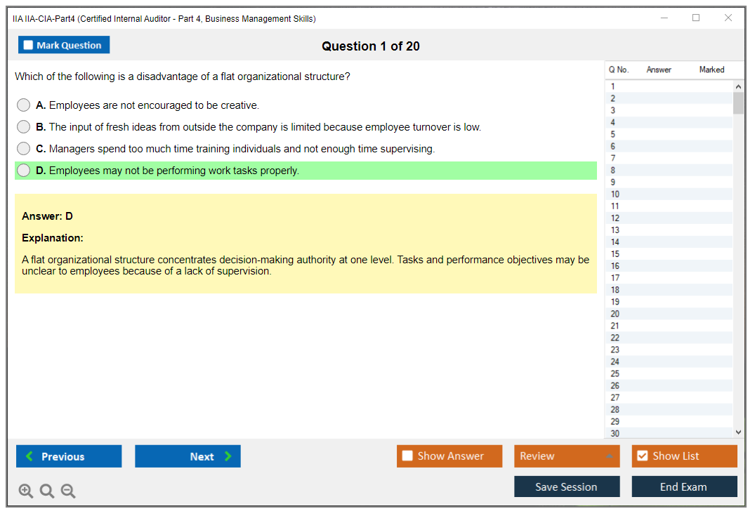 Certified Internal Auditor - Part 4, Business Management Skills Exam Trainings & Test Engine
