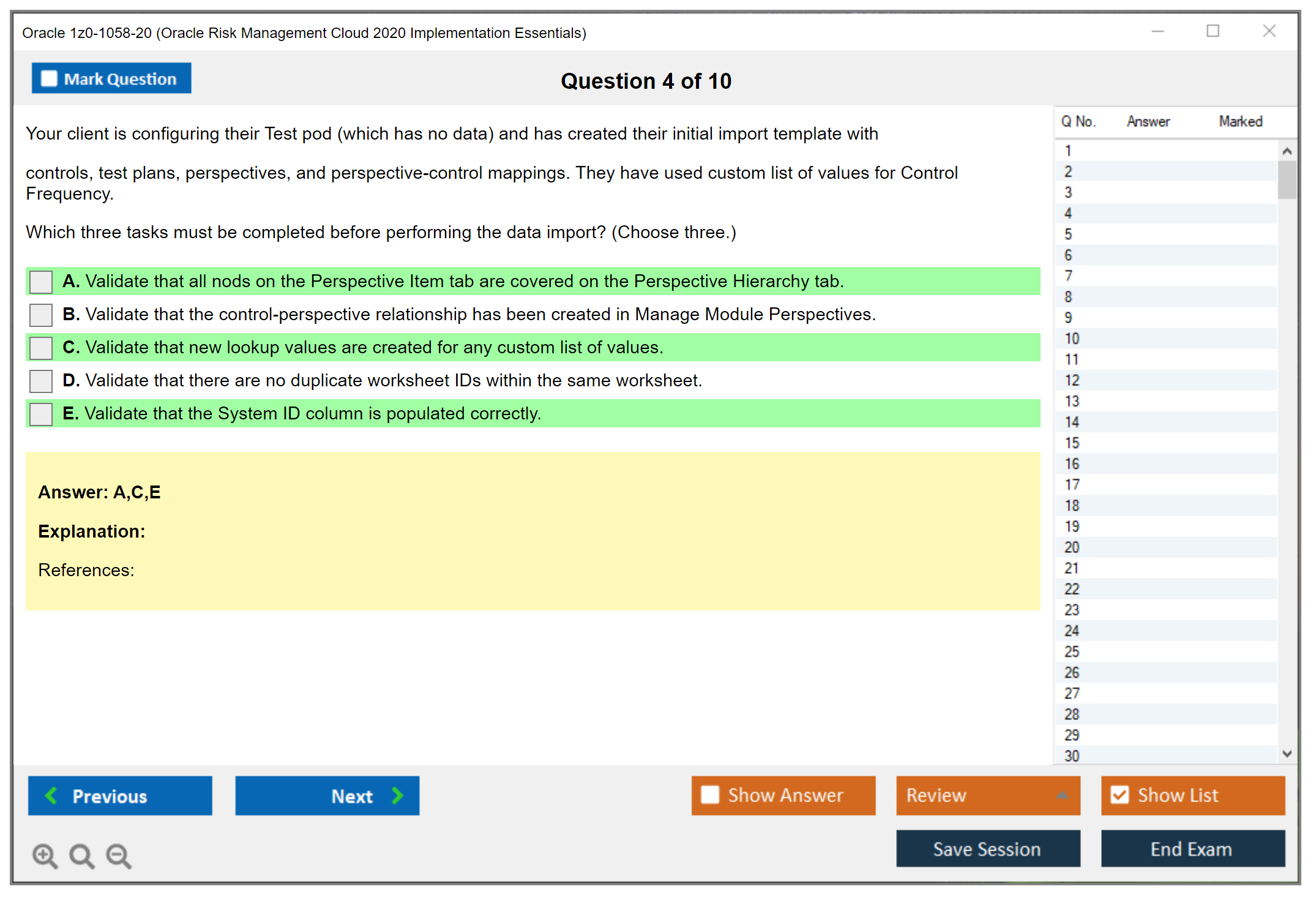 Oracle Risk Management Cloud 2020 Implementation Essentials Exam Trainings & Test Engine