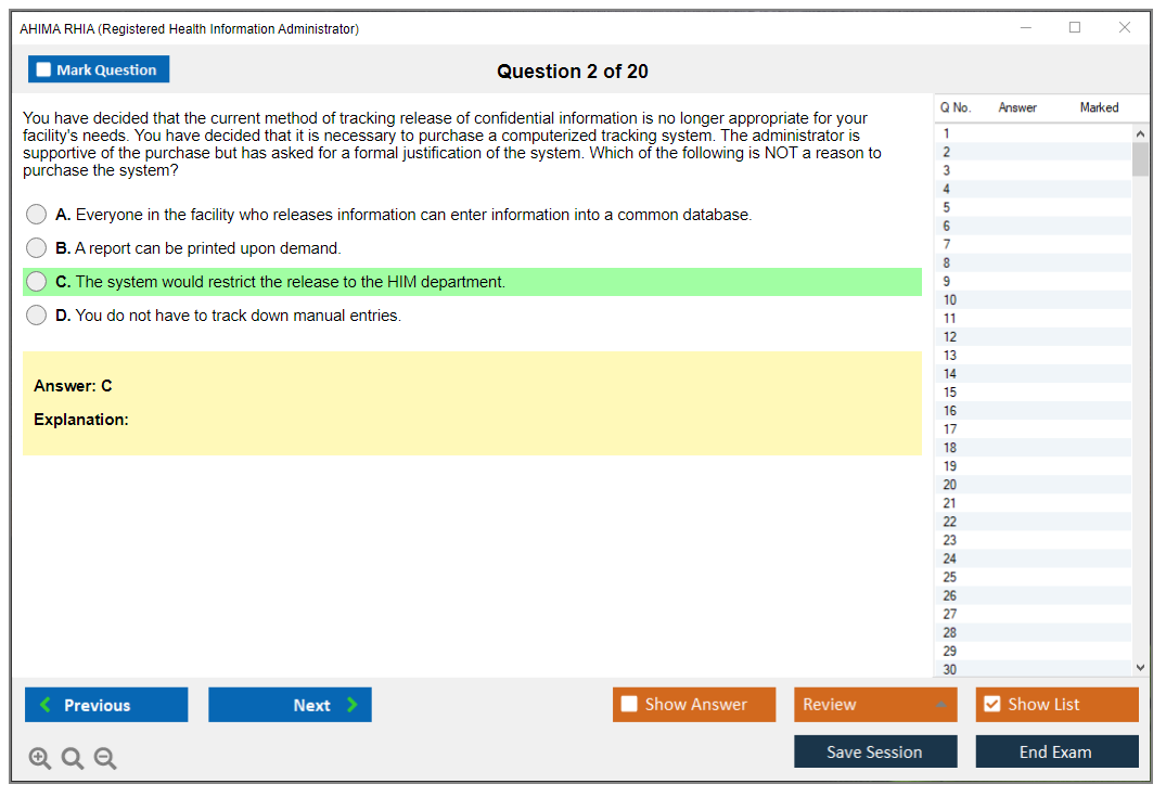 Registered Health Information Administrator Exam Trainings & Test Engine