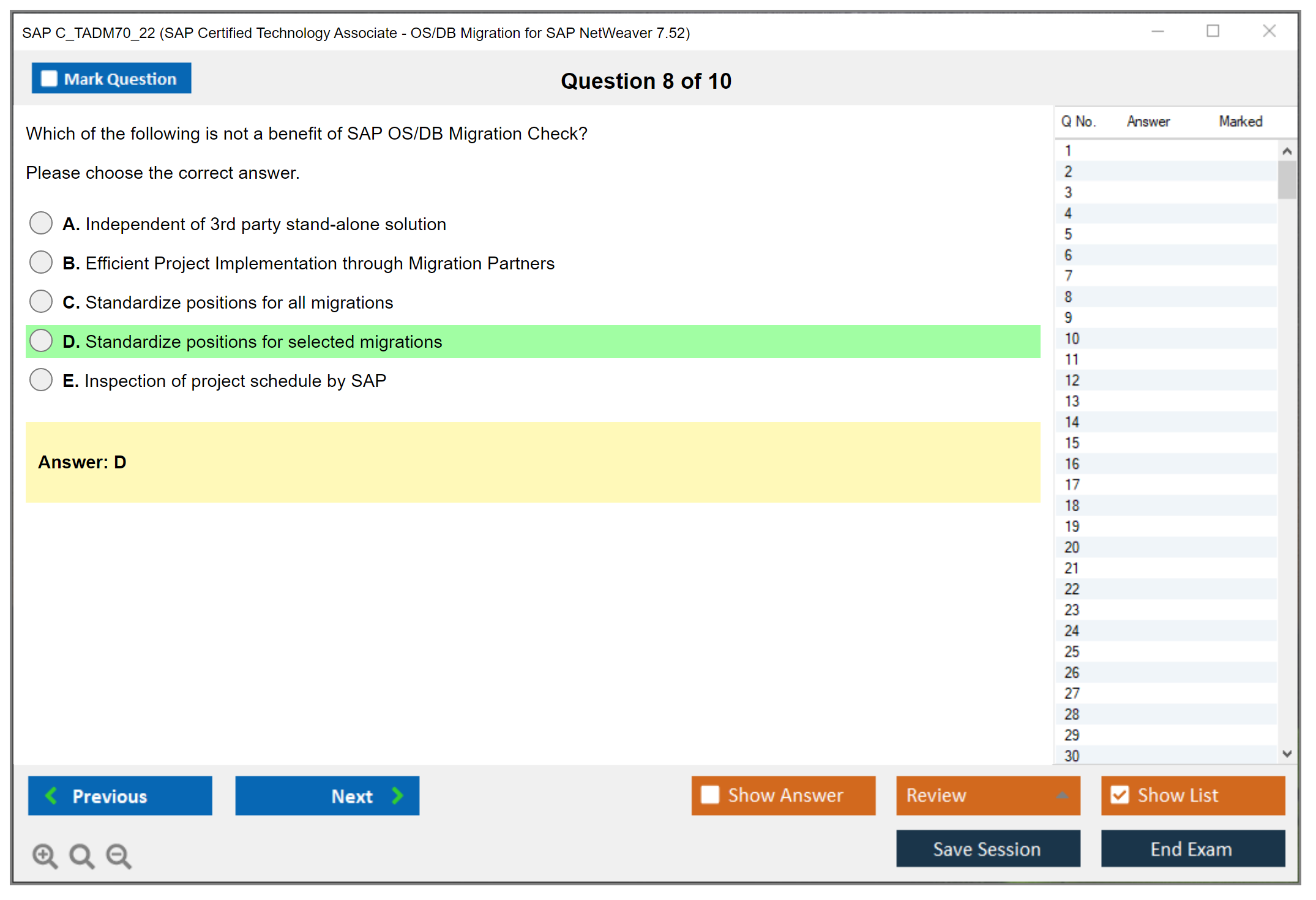 SAP Certified Technology Associate - OS/DB Migration for SAP NetWeaver 7.52 Exam Trainings & Test Engine